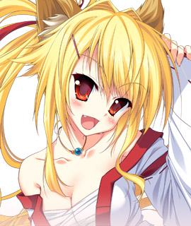 A Tenko, and somewhat of a mischievous flirt that prefers to go by Karin. She’s rambunctious and vivacious, and in a manner of speaking, unrefined. When speaking with the protagonist she tends to speak her mind, and isn’t shy about making her feelings known. Never fear, though, because her honesty is the genuine thing.